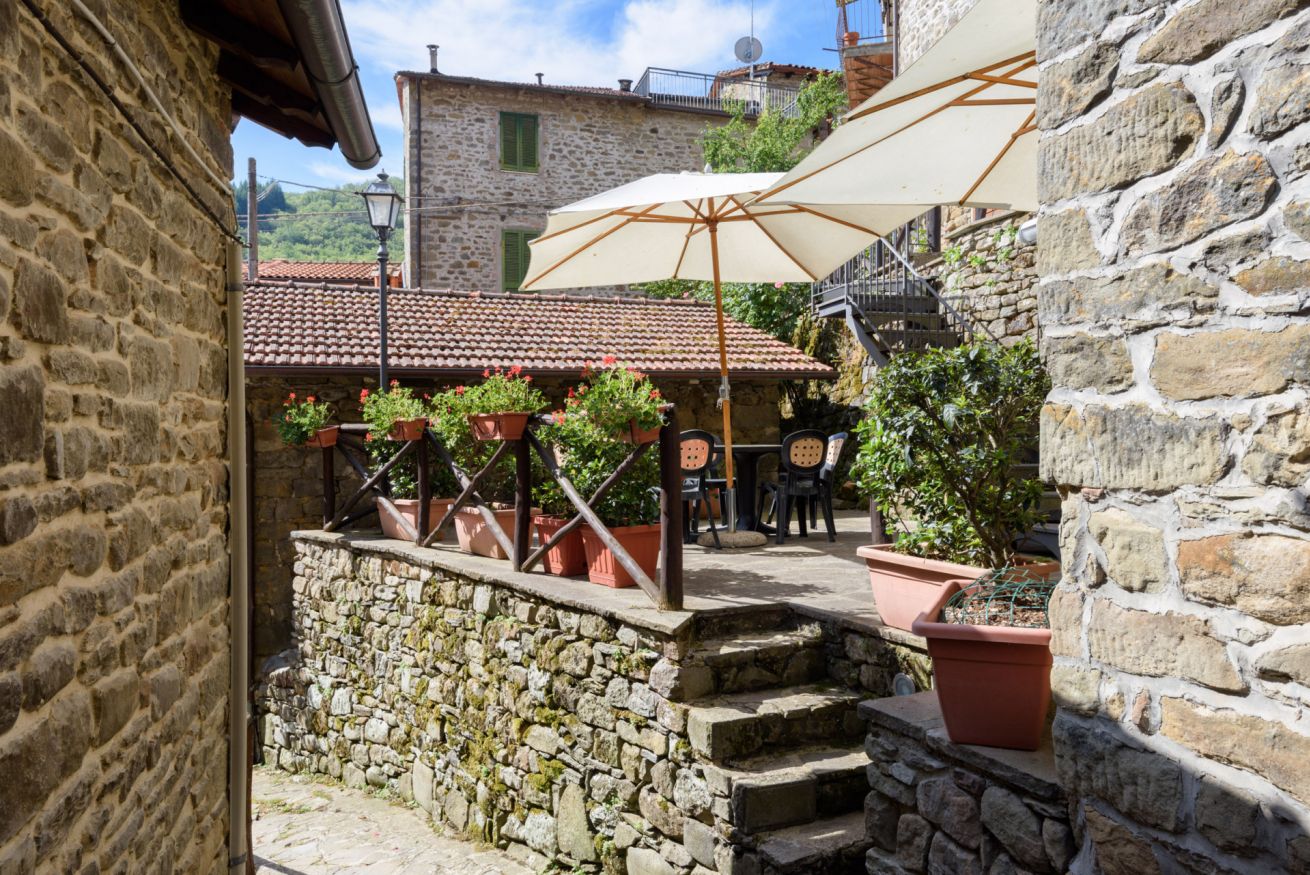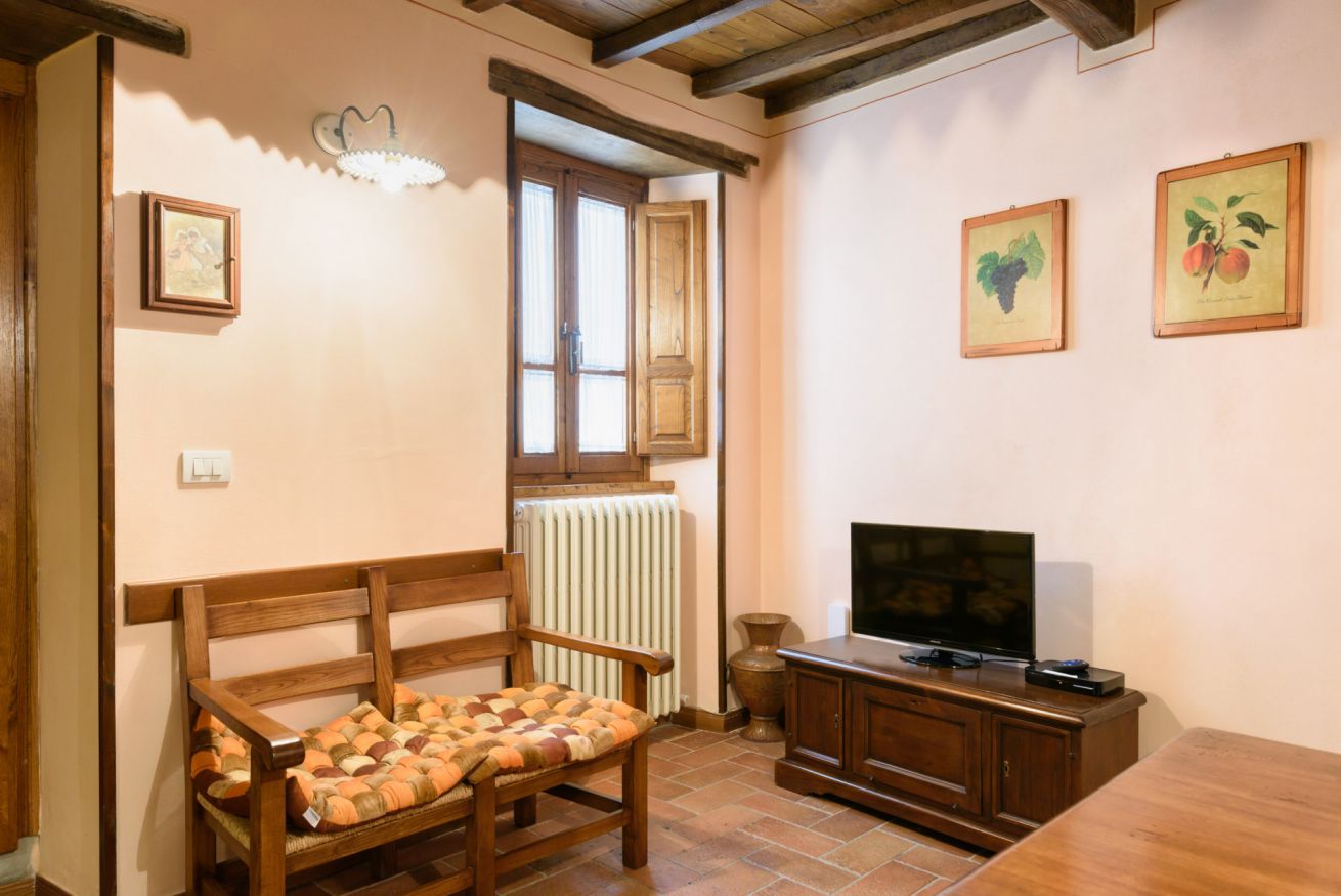 L'alloggio è collocato nel centro del paese ed è situato a soli 100 metri dalla sala ristorante dove serviamo la colazione e a 200 metri dal parcheggio. La piscina si trova a 1000 metri e è raggiungibile in auto o tramite il vecchio sentiero (15 minuti di cammino).